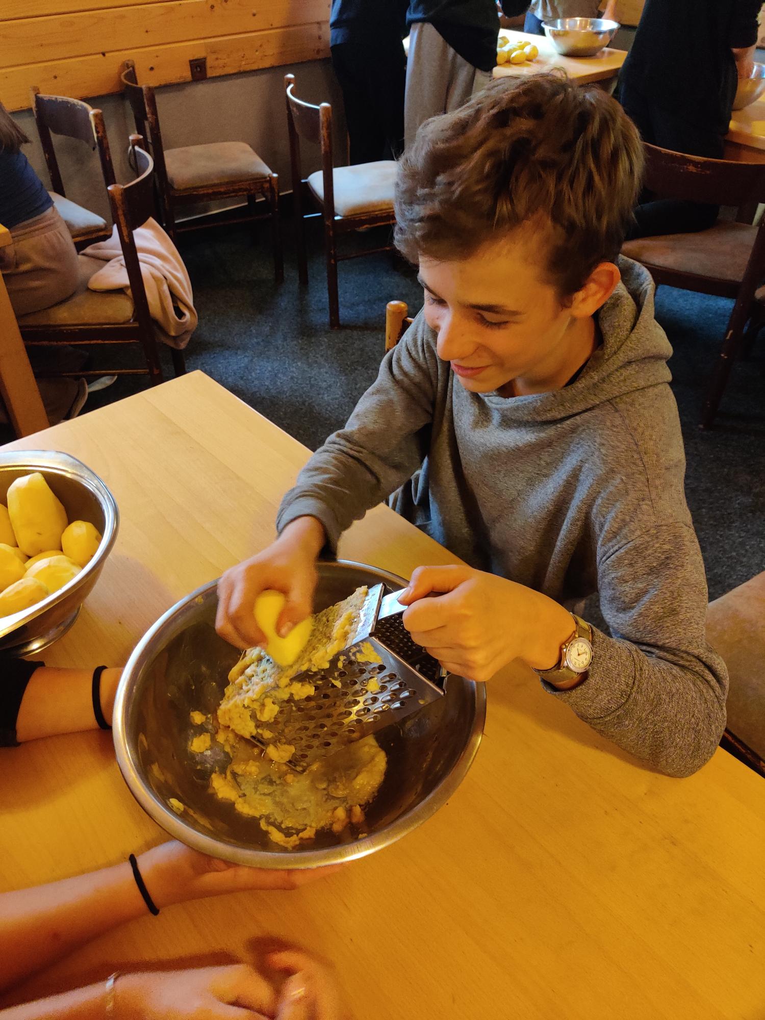 Pracovali jsme s různými druhy textů – od reklamních letáků a scénářů až po texty písní. Známou píseň skupiny Blaf „Cug do werku“ jsme se také pokusili přeložit do češtiny – a že nám slova jako pantograf nebo ślosorz daly zabrat. Nechyběly ani praktické aktivity. Při práci s pracovním listem o regionální kuchyni děti tvořili různé recepty našeho kraje a poté se pustily do škrábání brambor na společnou večeři – placky na blaše. Pro některé bylo škrábání brambor dokonce premiérou! O to víc si pak pochutnali na svých plackách, ať už se smetanou a cukrem, nebo se škvarkami.